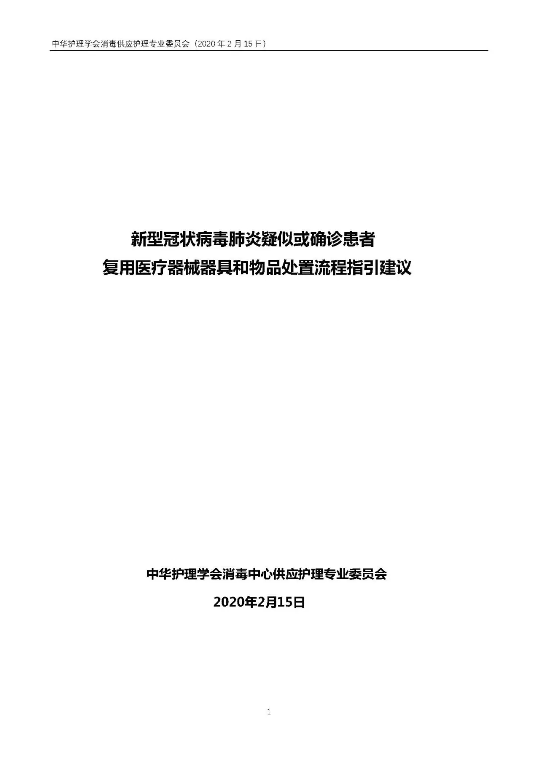 新型冠狀病毒肺炎疑似或確診患者復(fù)用醫(yī)療器械器具和物品處置流程指引建議